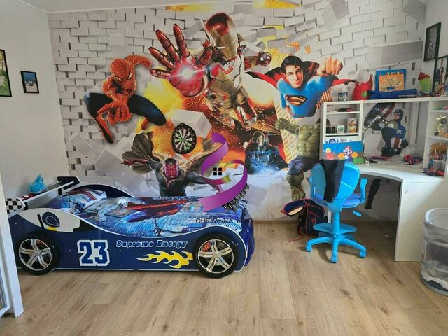 – Troisième étage : bureau idéal pour le télétravail et deux chambres à coucher d’environ 15 m² chacune
