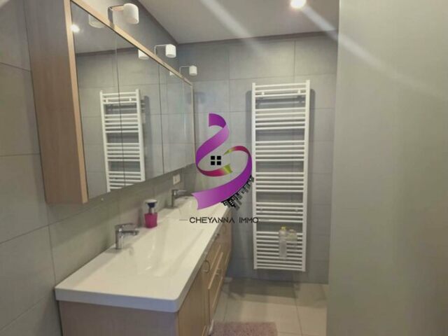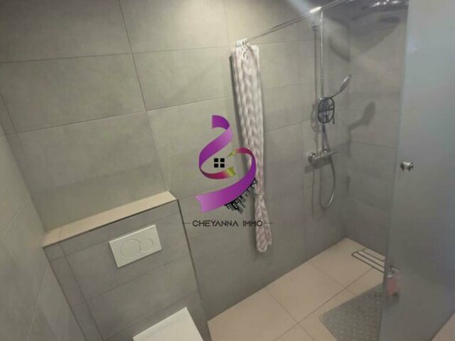 Rez-de-chaussée : hall d’entrée raffiné, WC séparé, séjour lumineux ouvrant sur un balcon, débarras, salle de bains avec WC.